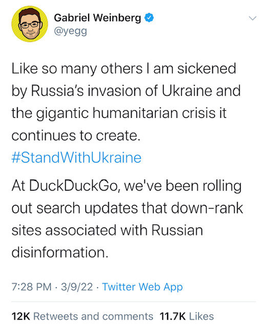 Unfortunately for loyal users of the service, myself included, that trust was recently undermined by the founder and CEO of the company, Gabriel Weinberg when he announced via Tweet that the search engine would be rolling out search updates that would down-rank sites associated with Russian disinformation.